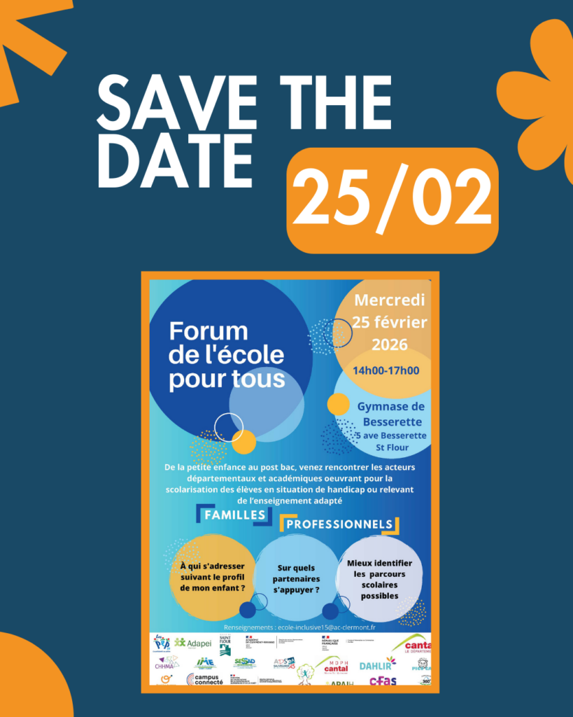 📢 Handi-Sup Auvergne sera présent au Forum « L’École pour Tous » à St-Flour le mercredi 25 février.